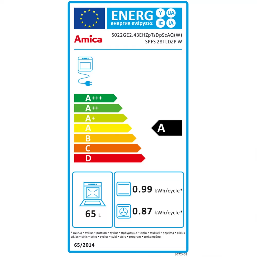 Sporák kombinovaný Amica SPFS28TLDZPW Energetická třída A Vnitřní objem trouby 65 l Celkový příkon 2,9 kW Horní topné těleso 900 W Spodní topné… Celý popis