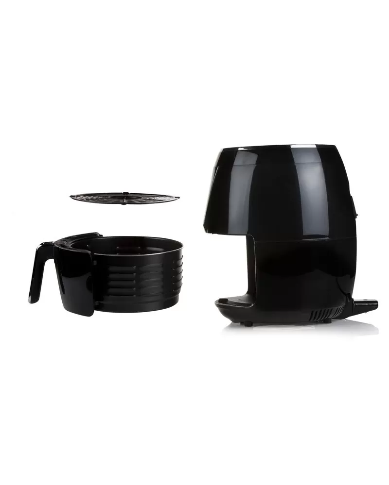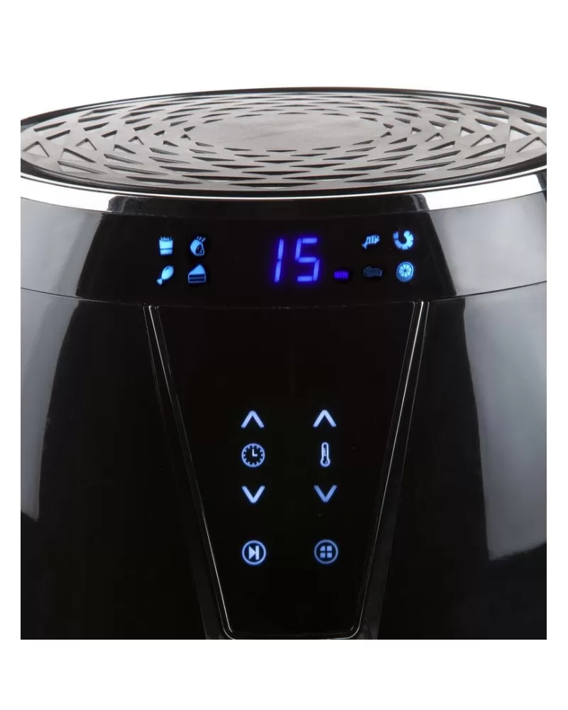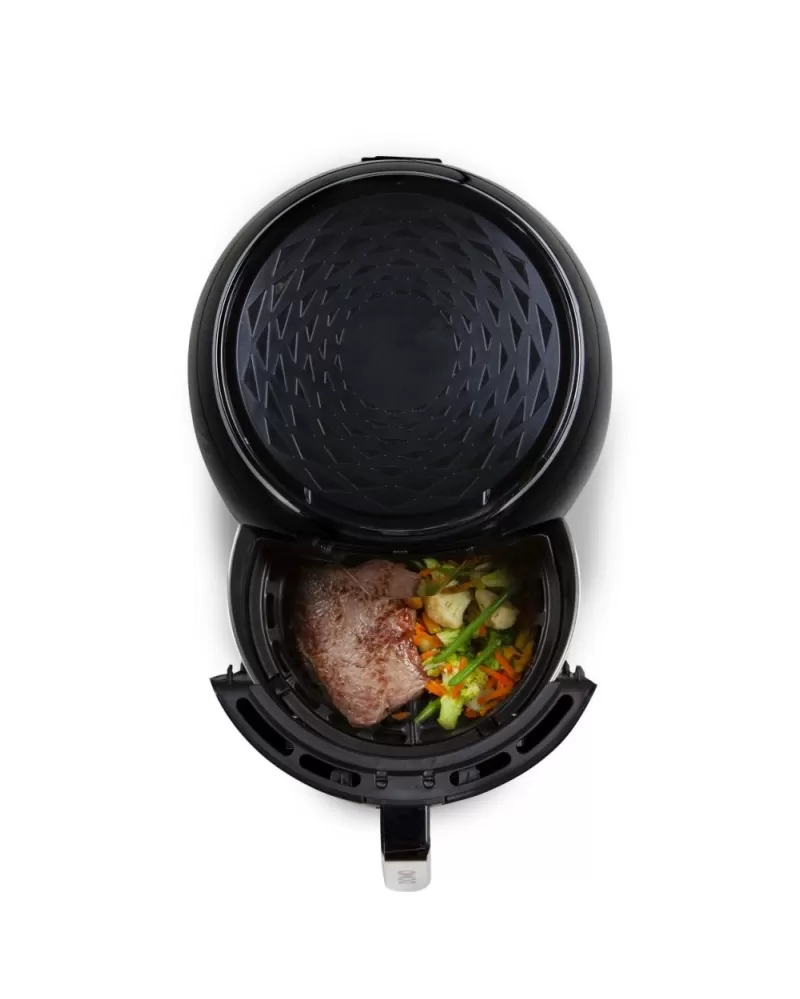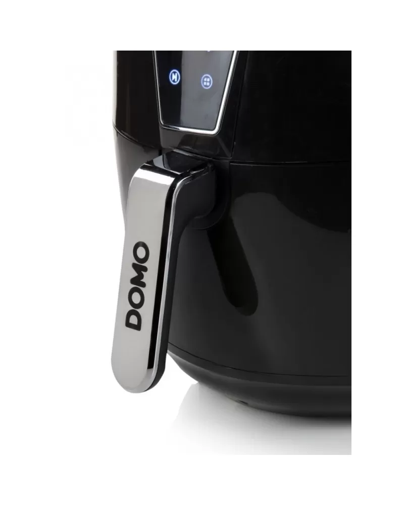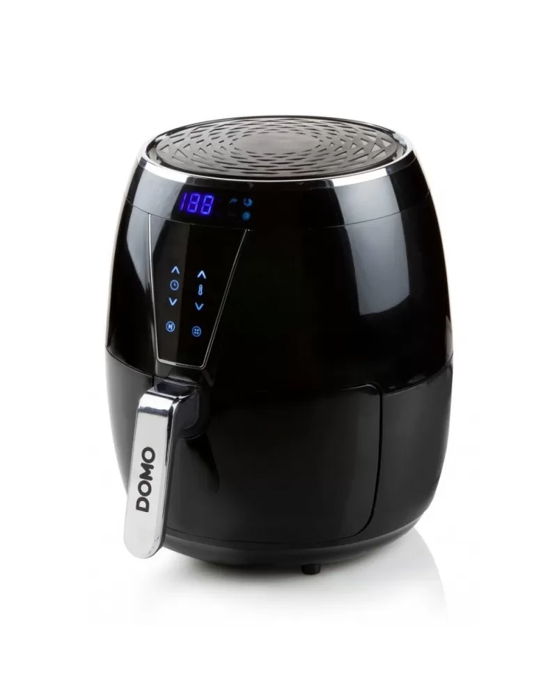 Horkovzdušná fritéza DOMO DO532FR s digitálním ovládáním pro přípravu pokrmu z až 1,2 kg surovin v objemné fritovací nádobě.