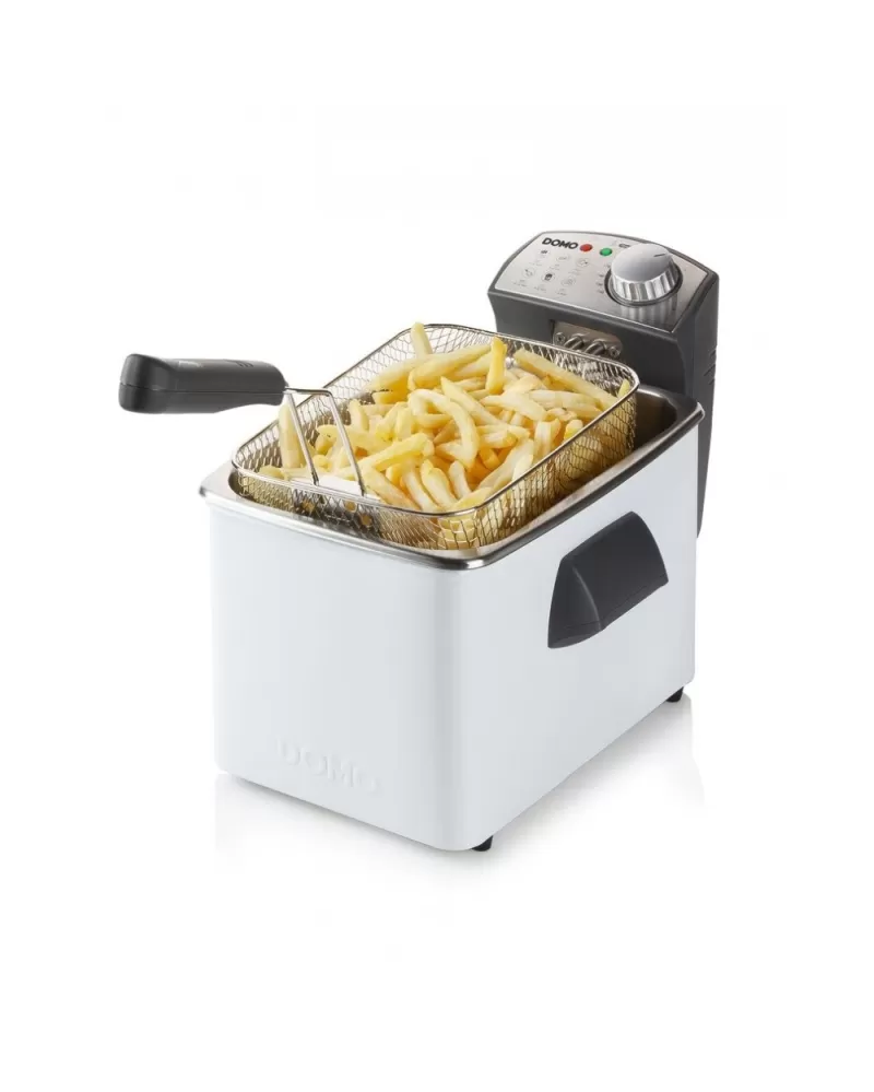 Plně rozebiratelná nerezová fritéza DOMO DO519FR v elegantní bílé barvě s extra dlouhým topným tělesem, pro rychlé nahřátí celého objemu oleje. Topné těleso je plně ponořené přímo do oleje asi 3,5 cm nad dnem nádoby, díky čemuž nedochází k přepalování zbytků surovin propadlých na dno nádoby. O hlídání teploty oleje se pak stará plynule nastavitelný termostat s čidlem ponořeným přímo do oleje.