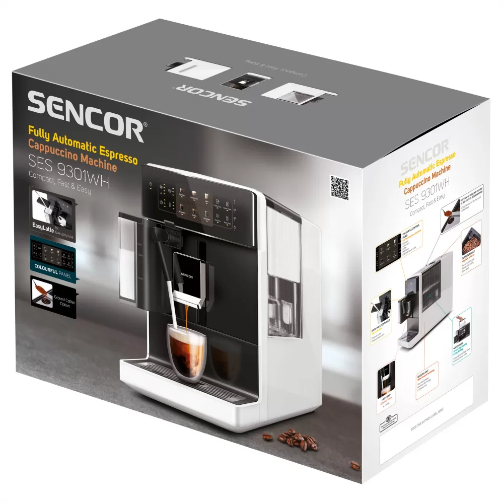Kdo by odolal lahodnému šálku kávy jako od profesionála? S elegantně štíhlým automatickým kávovarem Sencor SES 9301WH si jej připravíte pohodlně sami u vás doma nebo v kanceláři. Na dotykovém LED barevném ovládacím panelu si můžete jednoduše navolit intenzitu kávy a zvolit si velikost či druh kávového nápoje.
