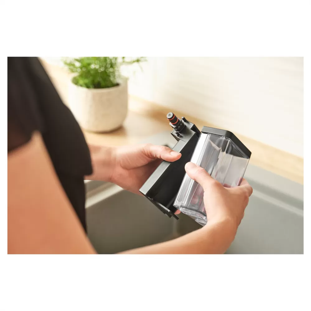 Perfektních výsledků dosáhne přístroj díky integrovanému systému napěnění mléka EasyLatte, který vám dopřeje jednoduchou přípravu cappuccina i caffé latte pro každý den. Systém na mléko se stisknutím tlačítka extra rychle vyčistí a váš kávovar je připraven na další použití. Dokonalých výsledků dosahuje automatické espresso díky souhře kvalitního vybavení a moderních funkcí, mezi které dále patří kovové mlecí kameny, topný systém Thermoblock, kvalitní čerpadlo s tlakem 19 barů a výkonná spařovací jednotka.
