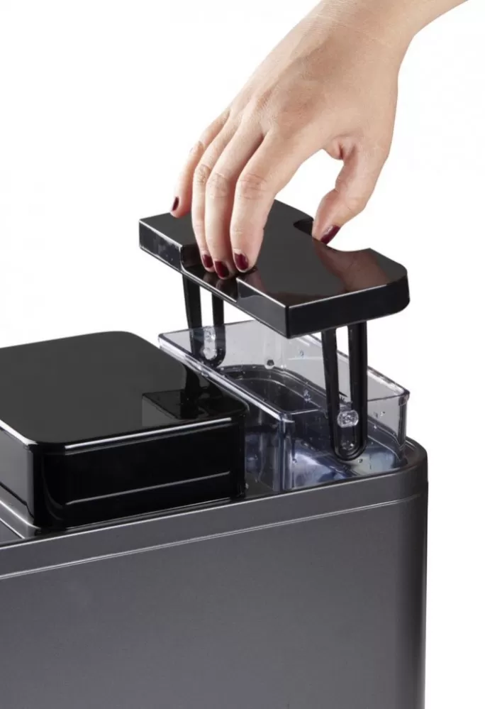 • Snadno vyjímatelný zásobník na kávovou sedlinu (vytažením dopředu)