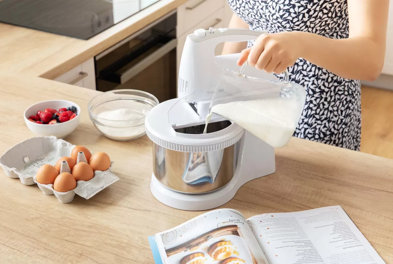Ruční šlehač s otočnou nerezovou mísou