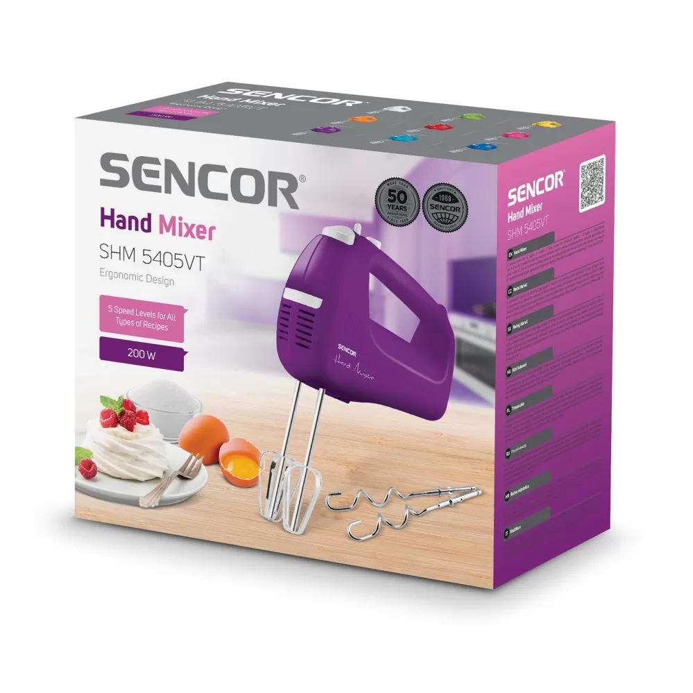 Ruční šlehač SENCOR SHM 5405VT 5 stupňů rychlosti - Stupeň 1 je vhodný pro míchání většího množství, stupeň 2 napomáhá ke zpracování tekutých… Celý popis