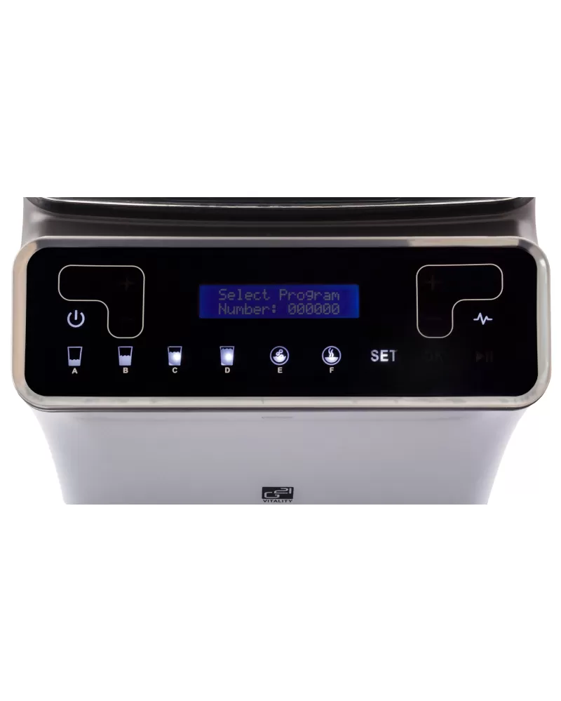 • Na digitálním displeji si zvolíte buď některý z přednastavených programů pro mixování tekutých mixů jako je džus a smoothie ve dvou objemech (0,5 l a 1 l), polévky nebo pyré.