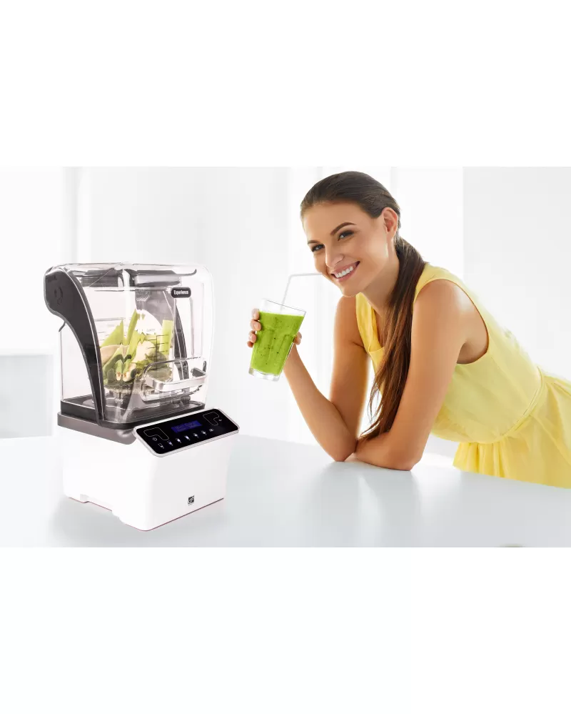 • Velkou předností tohoto stolního mixéru v atraktivním moderním designu je odhlučňovací kryt pro izolaci hluku.