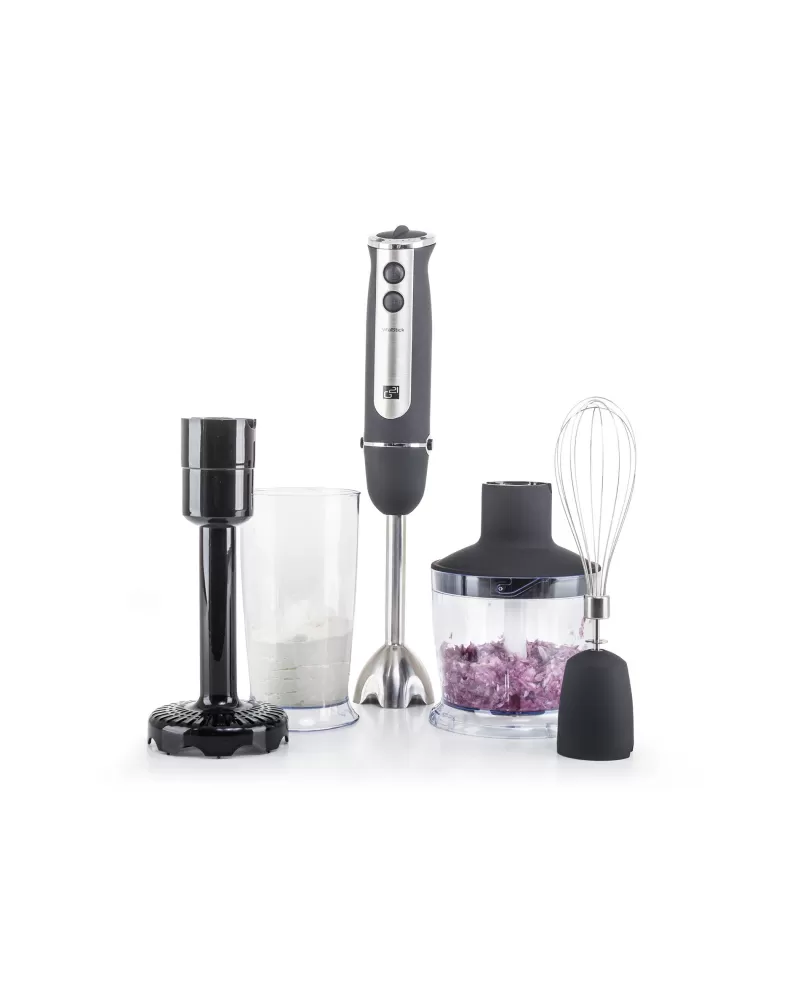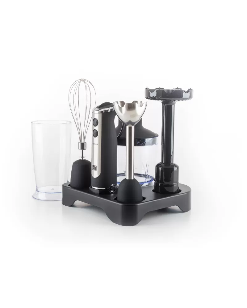 • Mysleli jsme na všechno, takže oceníte i vstřícně umístěné ovládací prvky a praktický stojan, do kterého mixér i s příslušenstvím snadno umístíte.