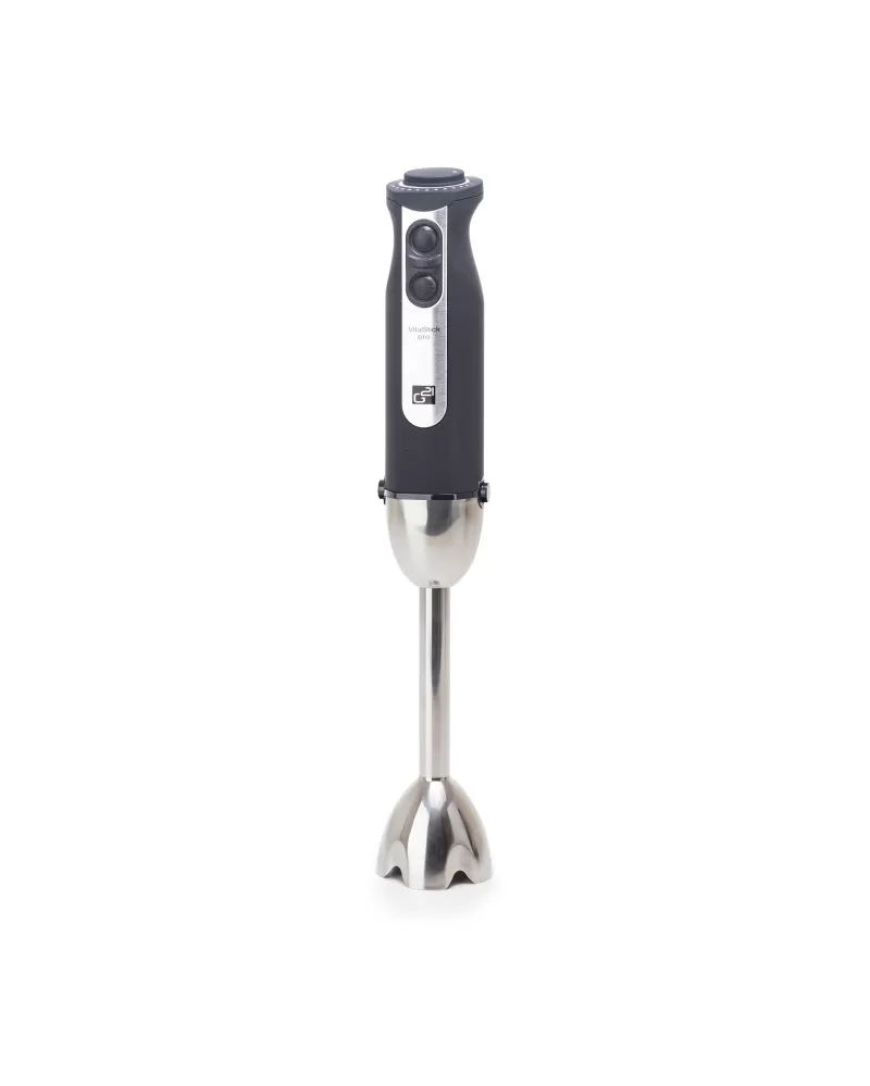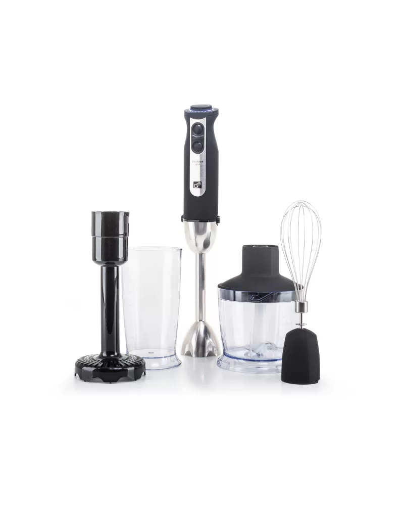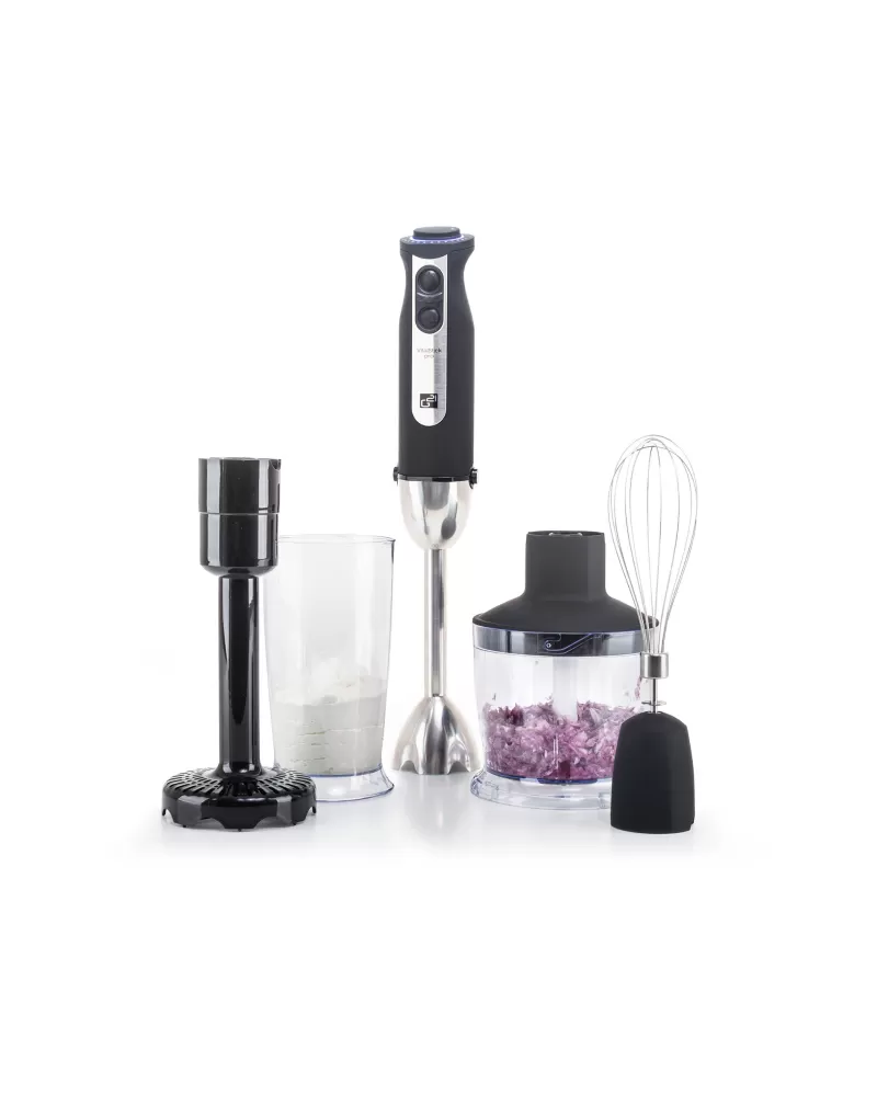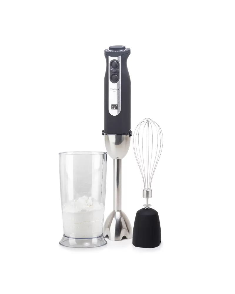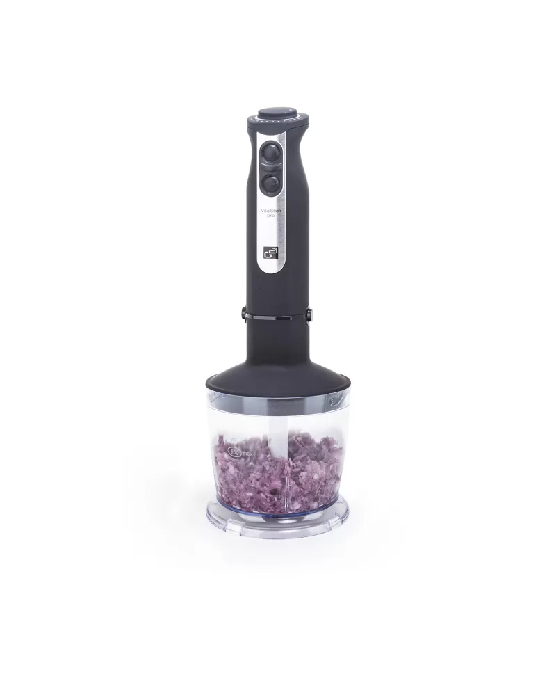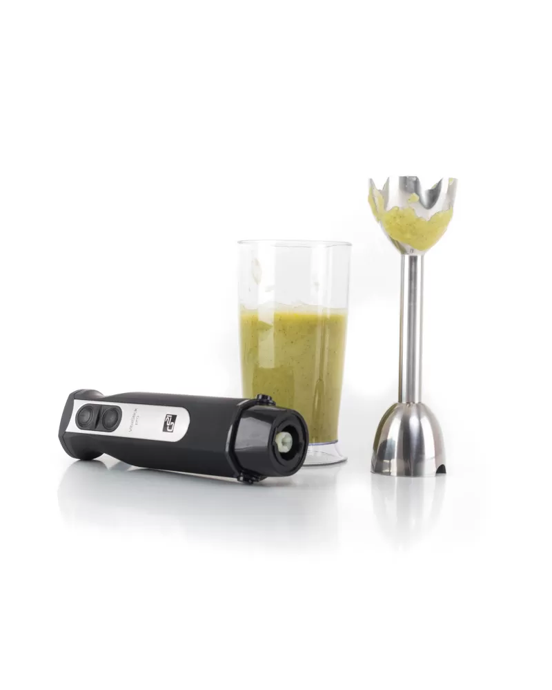 • Tyčový mixér VitalStick Pro s neuvěřitelným výkonem 1 000 W, krásně tichým chodem, unikátně sestavenými noži, extra odolným celokovovým tělem a bohatým příslušenstvím vám jako novinku představujeme právě teď. V čem je ještě výjimečný?