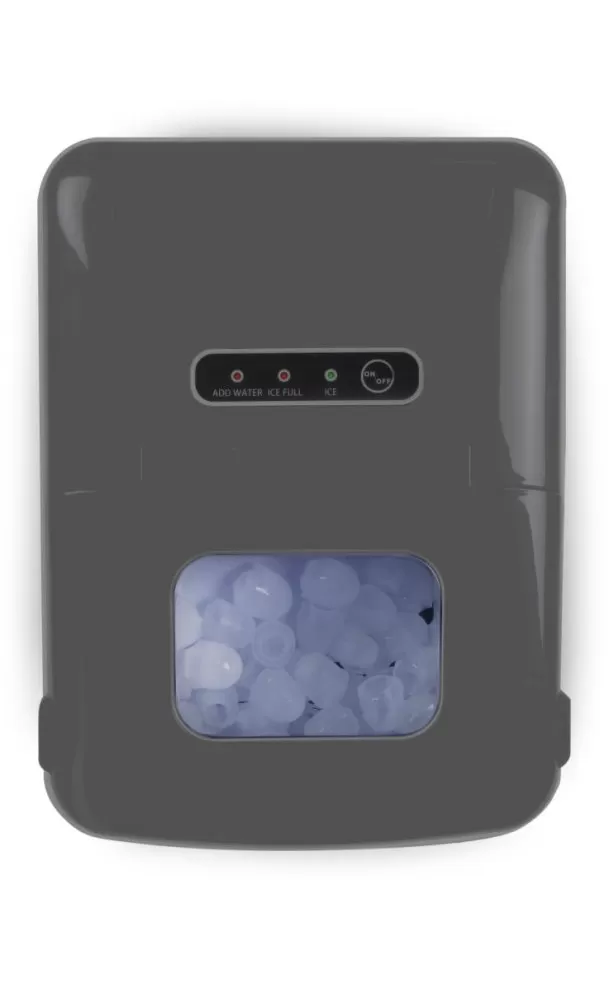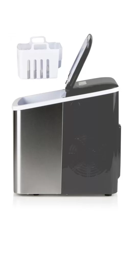 • Kompaktní domácí výrobník ledu v částečně nerezovém provedení vybavený vlastním kompresorem umožňujícím připravit až 12 kg ledových kostek za 24 hodin