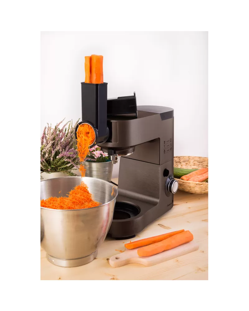 • S masivním celokovovým tělem, výkonem 1 500 W a neuvěřitelně bohatým příslušenstvím zastane veškerou práci při přípravě na vaření, pečení i mixování.
