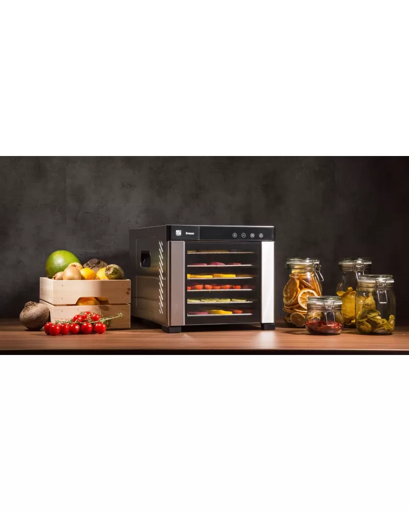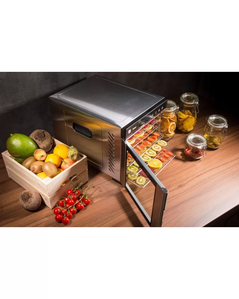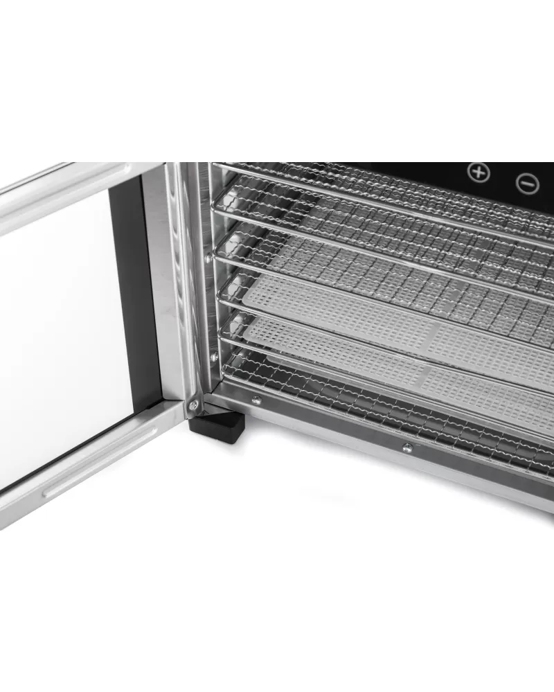 • Se svými 6 nerezovými sušícími tácy a 6 jemnými sušícími vložkami je díky kompaktnějšímu provedení ideální pro domácí použití nebo do provozů s menší pracovní plochou.