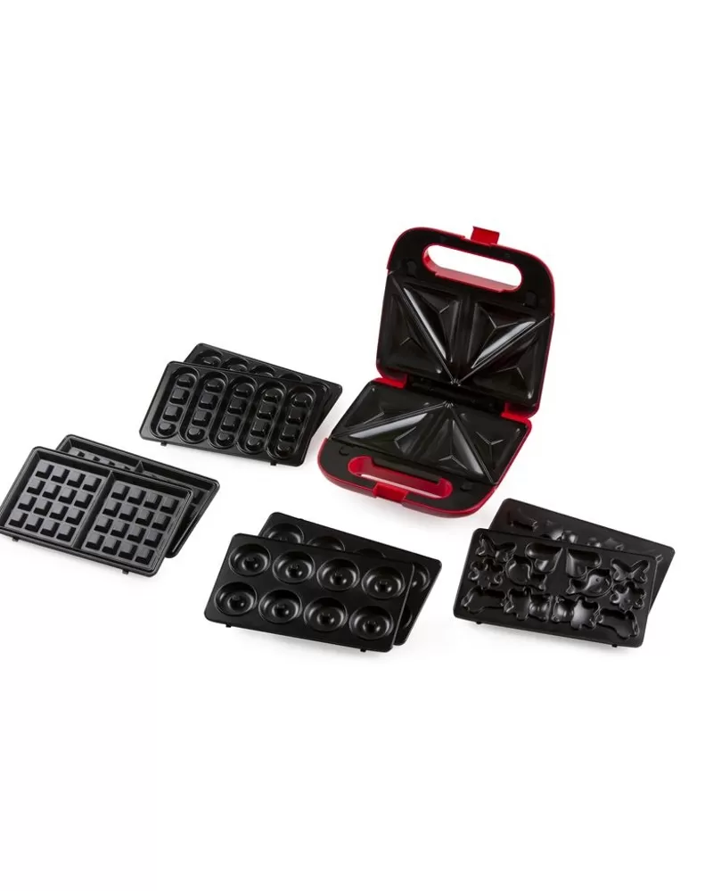 Vaflovač s výměnnými deskami udělá radost nejen každému kdo si rád pochutná na křupavých vaflích různých tvarů, ale díky různým pečícím deskám také na mini donutech, nebo trojúhelníkových sendvičích. Nepřilnavý povrch pečících desek zabrání nechtěnému připalování a usnadní jejich čištění. Správnou teplotu nahřátí signalizuje kontrolka nahřívání.