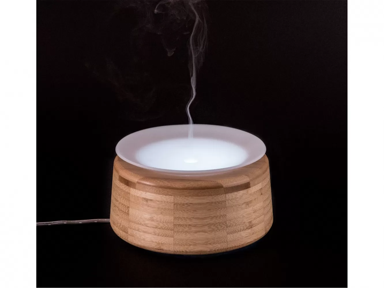 Zvlhčovač vzduchu s difuzérem vyrobený z přírodního bambusového dřeva. Aromatizuje a zvlhčuje vzduch kombinací účinků vodní mlhy a esenciálních olejů.