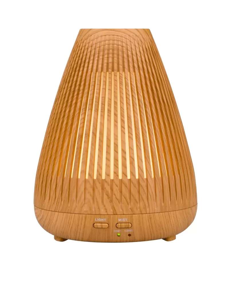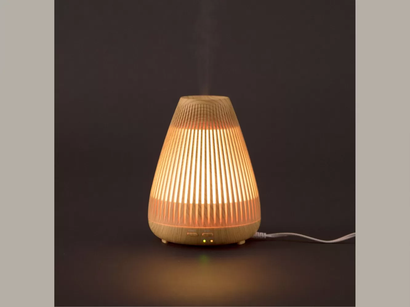 Zvlhčovač vzduchu s difúzorom v dizajne prírodného dreva (imitácia dreva). Aromatizuje a zvlhčuje vzduch kombináciou účinkov vodnej hmly a esenciálnych olejov.