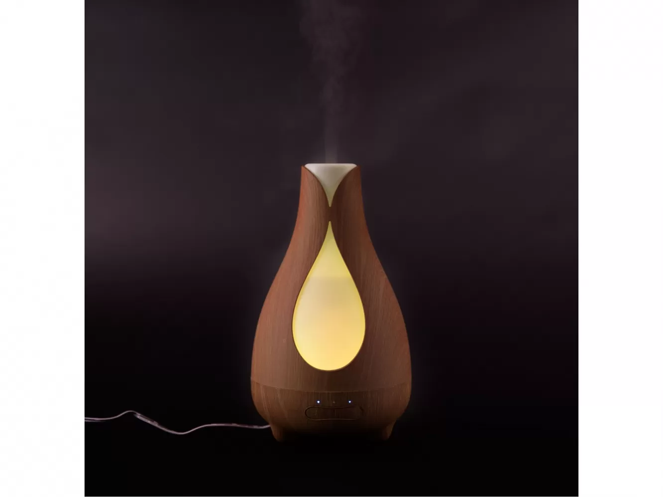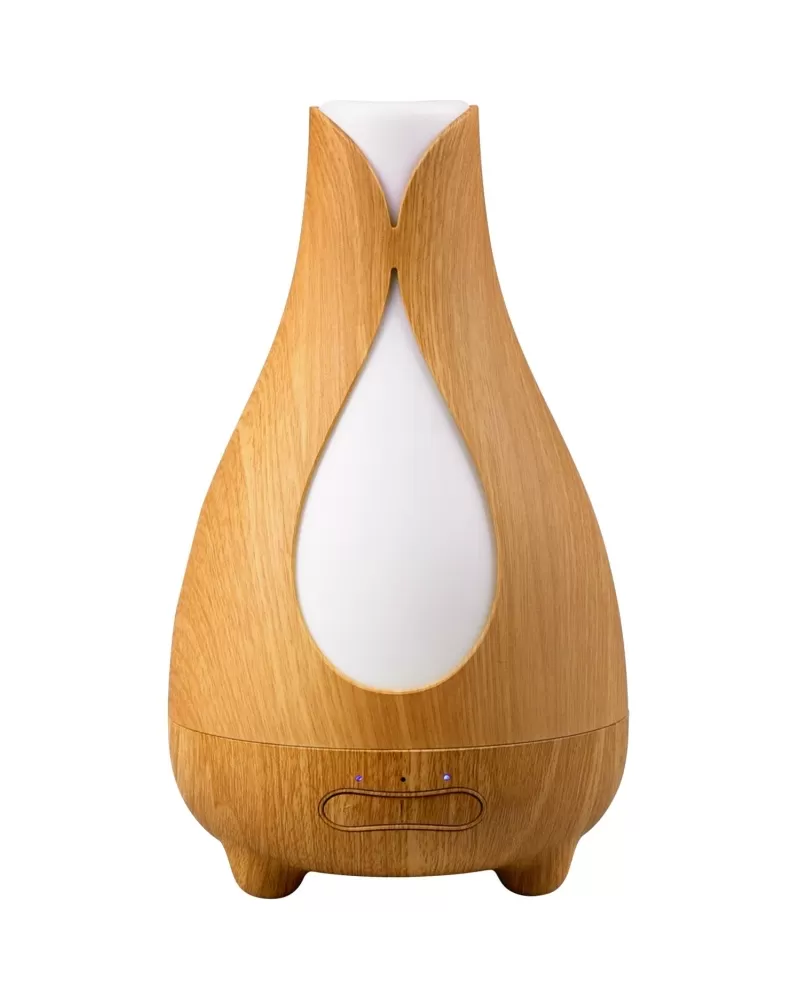 Zvlhčovač vzduchu s difuzérem v designu přírodního dřeva (imitace dřeva). Aromatizuje a zvlhčuje vzduch kombinací účinků vodní mlhy a esenciálních olejů.