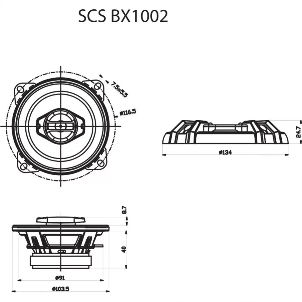 Autoreproduktory SENCOR SCS BX1002 4“/10 cm průměr 2pásmový koaxiální Pogumovaná membrána Průměr cívky 1“ (25 mm), ASV Průměr výškového reproduktoru… Celý popis