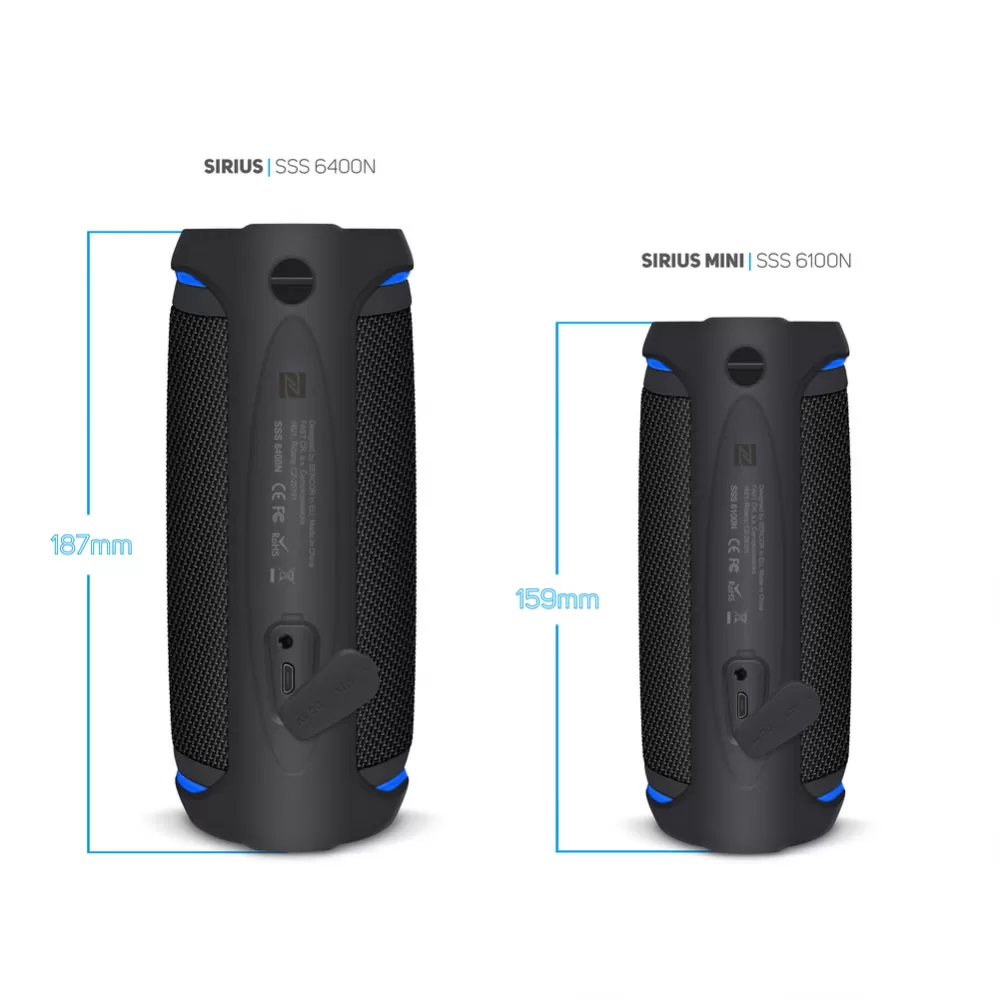 Bluetooth reproduktor stupně krytí IPX6. Převratný SSS 6400N je kompaktní voděodolný reproduktor s 360° prostorovým zvukem. Umožňuje poslech oblíbené hudby ze smartphonu nebo tabletu prostřednictvím bezdrátového Bluetooth připojení do vzdálenosti až 15 m. Výkonný a čistý zvuk zajišťují dva reproduktory s maximálním výkonem 30 W a dva pasivní zářiče. Tento reproduktor je vybaven technologií NFC, která umožňuje snadné a rychlé připojení k vašemu smartphonu a technologii TWS umožňující současné připojení dvou reproduktorů. Tento reproduktor je voděodolný se stupněm krytí IPX6. Nemusíte se obávat poslechu hudby za nepříznivého počasí nebo vedle bazénu. Díky velké vestavěné 4000mAh dobíjecí baterii můžete poslouchat hudbu až 7 hodin. Jedinečný SSS 6400N je perfektním partnerem v jakékoli situaci a na jakémkoli místě.