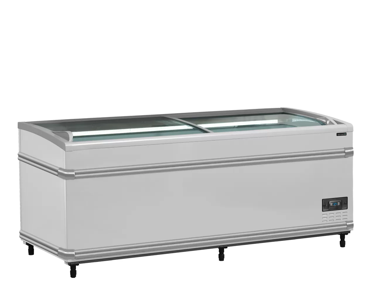 Chladicí / mrazicí ostrovy pro supermarkety řady SFI-CF jsou k dispozici v několika barvách a díky oblým posuvným proskleným víkům nabízí skvělou prezentaci produktů v nich umístěných. Obsah je osvětlen LED osvětlením na zadní stěně ostrova. Nastavitelná falešná dna mezi přepážkami umožňují zvýšit výšku dna, aby ostrov vždy vypadal, že je plný produktů. Ideální pro supermarkety, obchody s potravinami, řeznictví apod. Pokud si vyberete model VS, ušetříte přibližně 20 % na spotřebě energie. snadné přepínání mezi chlazením a mrazením|energeticky úsporný invertorový kompresor|skvělá viditelnost produktů|posuvná oblá víka|ideální do kombinace s modely MTF nad ostrovem|nastavitelná falešná základna|vnitřní LED osvětlení|nárazové lišty|na objednávku spojovací sada pro sestavu ostrova Mrazicí / chladicí ostrovy vhodné do čela ostrova