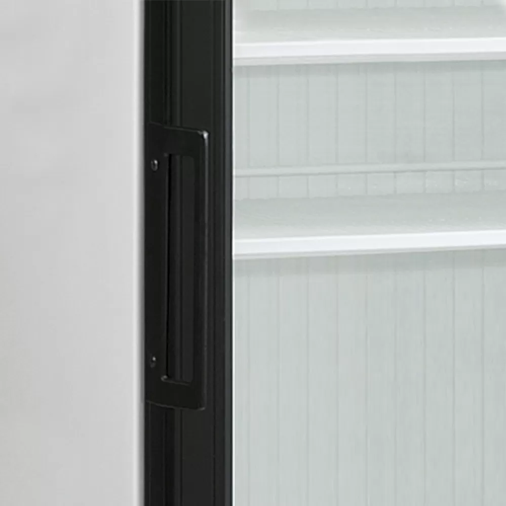 Řada chladicích skříní na nápoje SCU nabízí velký výstavní a úložný prostor. Dodává se v několika velikostech, s osvětleným reklamním panelem, nebo bez něj. Jedná se o bílou skříň s černými oboustrannými prosklenými dveřmi s hliníkovým rámem, nastavitelnými policemi a vnitřním LED osvětlením pro optimální prezentaci výrobků. Chladicí systém s ventilátorem zajišťuje rovnoměrné chlazení celé skříně. nastavitelné police|lze měnit otevírání dveří|nastavitelné nožky|vnitřní LED osvětlení|prosklené křídlové dveře s hliníkovým rámem|chlazení s pomocným ventilátorem TEFCOLD SCU 2375