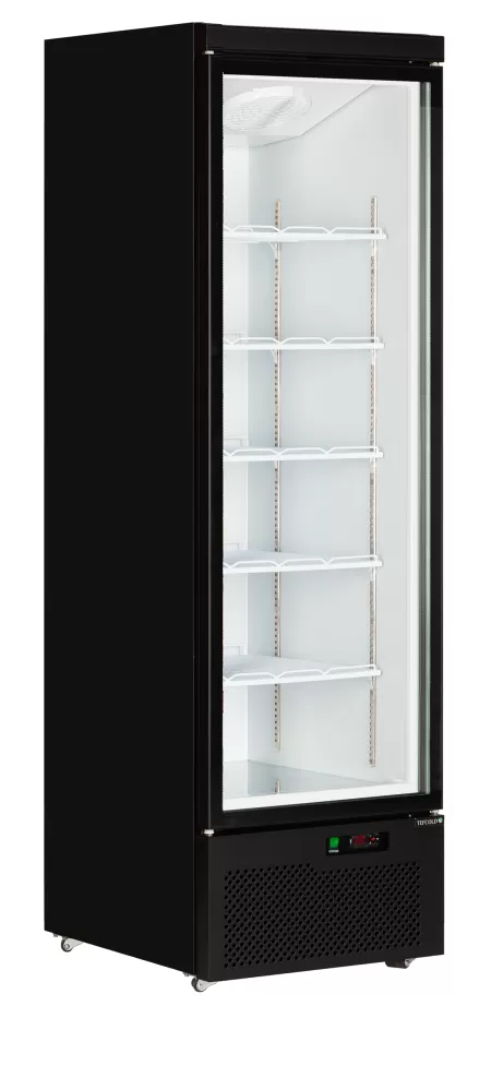 Řada chladicích skříní s prosklenými dveřmi Atom Maxi nabízí skvělou kvalitu za konkurenceschopnou cenu. Je vybavena dvěma nebo třemi samozavíracími prosklenými dveřmi, LED osvětlením a nastavitelnými policemi pro optimální prezentaci výrobků. Disponuje účinným ventilačním chladicím systémem, který zaručuje nízkou spotřebu energie, a snadno ovladatelným regulátorem teploty. K dispozici také v mrazicí verzi. vynikající prezentace produktů|nízká spotřeba energie|samozavírací prosklené dveře na pantech|dvojité tvrzené sklo|vnitřní svislé LED osvětlení|ventilované chlazení|nastavitelné police|digitální termostat a teplotní displej|kolečka|dostupné také v mrazicí verzi|spodní výstavní plocha nerezová Chladicí skříň s prosklenými dveřmi s nízkou spotřebou energie