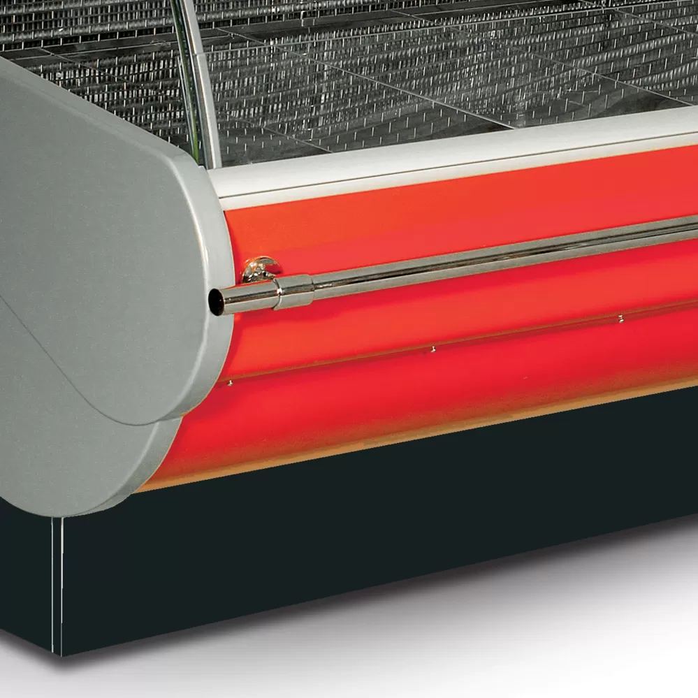 NA OBJEDNÁVKU • verze bez agregátu: sleva dle délky vitríny • 2 varianty teplé verze (teplotní rozsah +40 až +90 °C): – vyhřívaná plocha / vodní lázeň • samoobslužná verze (teplotní rozsah +4 až +10 °C): – cena totožná s ventilovanými vitrínami • automatické odpařování kondenzátu • skleněná police • dělicí přepážka nízká, vysoká nebo v úložném prostoru • police na tašky kruhový nebo čtvrcový profil • odkládací deska žula • kolečka • nerezová kaskáda (výstavní plocha) • spojování do sestav – bočnice 4 cm • bez příplatku: LED osvětlení barva bílá studená nebo bílá teplá – nutno specifikovat při objednávce • deska pod váhu nebo pokladnu • pojezdová lišta pro desku pod váhu / pokladnu • lakovaný výparník: příplatek dle délky • přepravní balení – dřevěný box • jiné barevné provedení RAL ventilované chlazení|vestavěný agregát|digitální termostat|automatické odtávání|odtávací tyč pod výparníkem|vyhřívané čelní sklo|vnitřní skleněná clona proti mlžení|LED osvětlení vitríny barva růžová (na maso)|nerezová výstavní plocha|nerezový úložný prostor|nerezová odkládací deska|bočnice ABS|zadní plexi krytí|chromovaná tyč proti nárazu|zásuvka 230 V / 50 Hz Chladicí vitrína obslužná ventilovaná