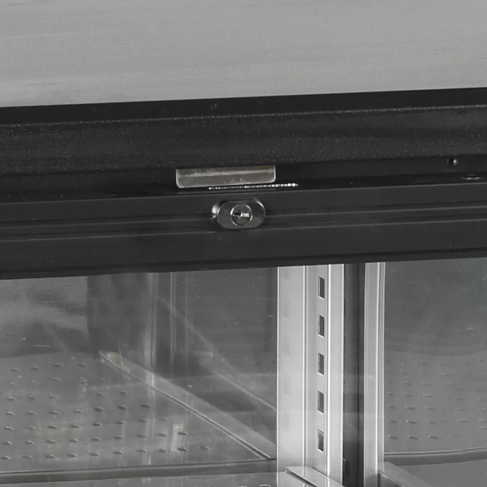 Chladicí minibary TEFCOLD CBC jsou oblíbené pro svůj elegantní vzhled, robustní poctivé provedení a variaci možností, co se velikosti týče. Křídlové dveře jsou samozavírací a prosklené (označení G jako "glass" - sklo), vyhřívané, k dispozici jsou také s plnými dveřmi. Vnitřní prostor je krásně viditelný díky LED osvětlení, které je u moderních minibarů samozřejmostí. Výšku minibaru je možné regulovat pomocí nastavitelných nožek. odolné zařízení do náročného provozu|samozavírací prosklené dveře|nerezový interiér se zrcadlovým efektem|nastavitelné nerezové police SS304|nastavitelné nožky|ventilované chlazení Černý minibar se dvěma prosklenými křídlovými dveřmi