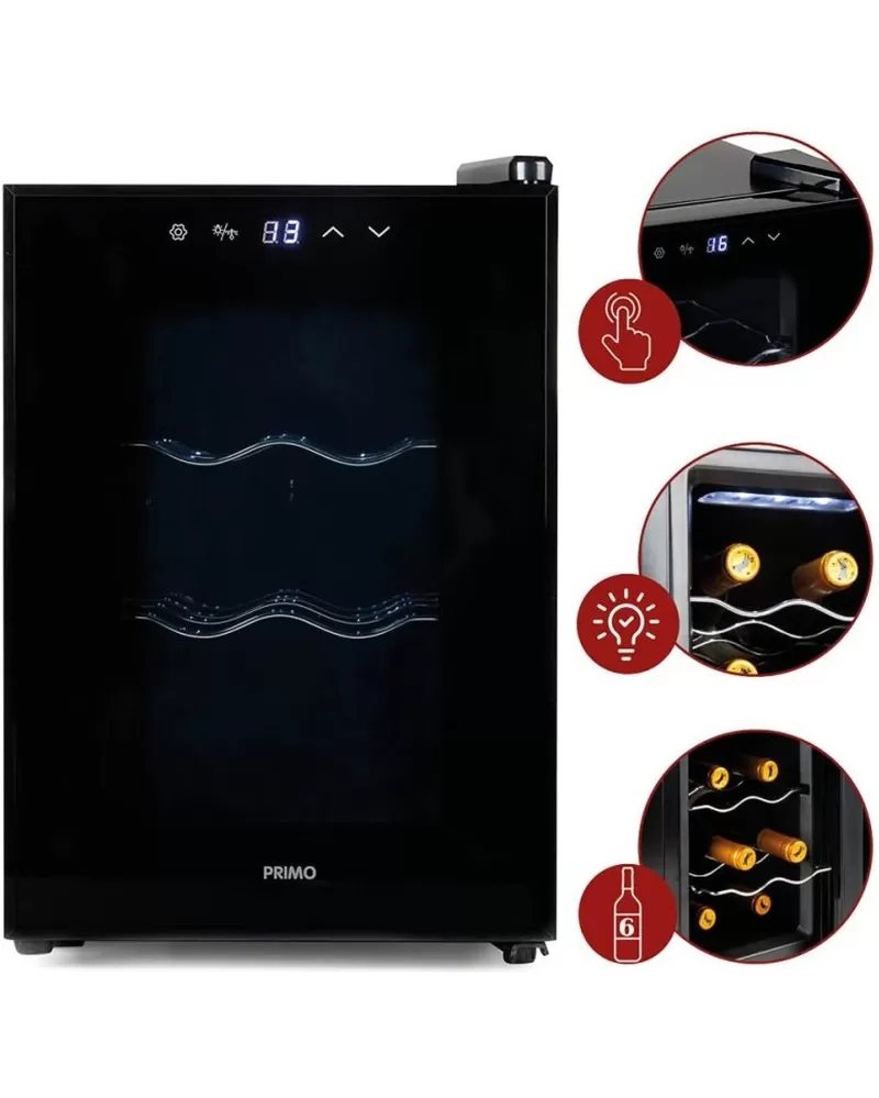 Domácí vinotéka kompaktních rozměrů a kapacitou na 6 lahví je ideální volbou pro lidi s menším bytem, kteří ale nechtějí dělat ústupky a vždy si vychutnat víno v té nejlepší kvalitě. Víno z vinotéky bude vždy vychlazené na správnou teplotu, kterou si lze jednoduše nastavit i sledovat na podsvíceném LED displeji. Svým elegantním designem s vnitřním LED bílým osvětlením doplní váš interiér.