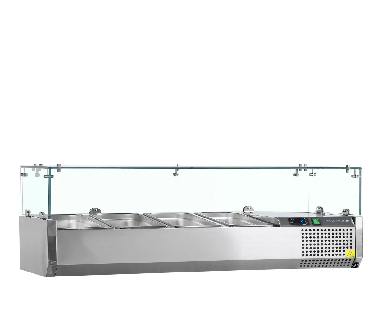 Řada chladicích nástaveb VK38 je skvělým doplňkem gastro pultů, protože vám umožňuje mít na dosah vše, co potřebujete k přípravě jídla. Je vhodná pro gastronádoby GN 1/3 a GN 1/2 x 150 mm (nejsou součástí). VK38-120: 4 x GN 1/3 nebo 3 x GN 1/3 + 1 x GN 1/2 VK38-150: 6 x GN 1/3 nebo 5 x GN 1/3 + 1 x GN 1/2 VK38-160: 7 x GN 1/3 nebo 5 x GN 1/3 + 1 x GN 1/2 VK38-180: 8 x GN 1/3 VK38-200: 9 x GN 1/3 nerezová ocel|statické chlazení|skleněné krytí na ochranu potravin|nastavitelné nožky|přizpůsobeno GN1/3 (nejsou součástí balení) Stolní chladicí nástavba