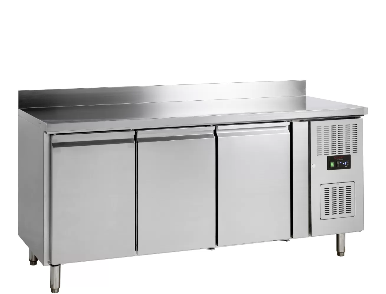 Chladicí stoly ze série G-line jsou skvělými pomocníky především v profesionálních kuchyních. Rozměry jsou přizpůsobeny pro GN1/1 a nerezová ocel, z níž jsou stoly TEFCOLD vyrobeny, je ideální pro snadnou údržbu a čisté prostředí, které v kuchyni jistě oceníte. Nožky jsou nastavitelné, a tak je možné přizpůsobit výšku stolu potřebám vaší kuchyně a je snadné udržovat v čistotě i podlahu pod stoly. Stoly je možné kombinovat také s chladicími nástavbami a jsou dostupné rovněž v mrazicí verzi. prověřená kvalita za příznivou cenu|nerezová ocel|automatické odmrazování|samozavírací dveře|odstranitelná pracovní deska se zadním lemem|nastavitelné nohy|ventilované chlazení Chladicí stůl do profesionálních kuchyní a gastroprovozů