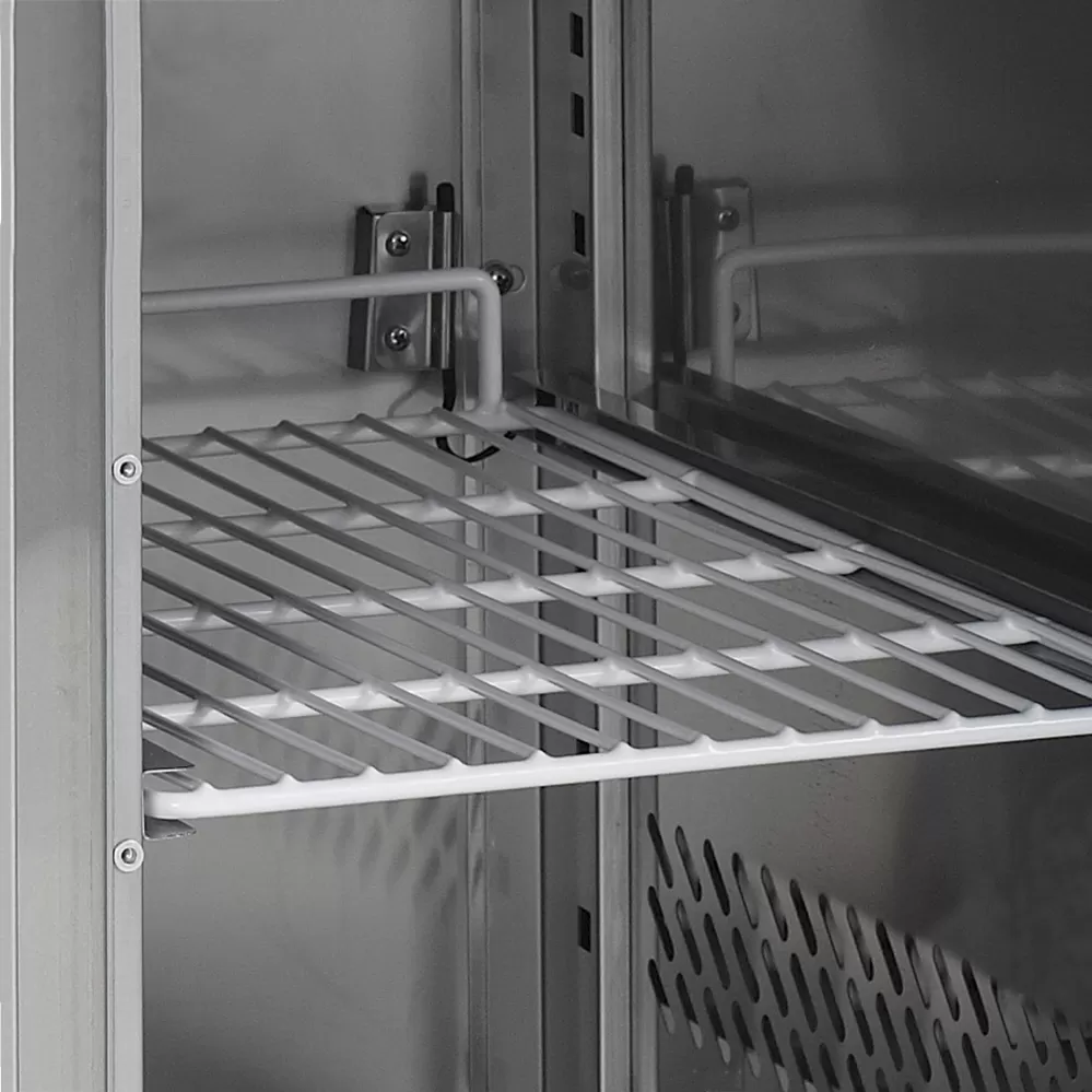 Mrazicí saladeta SA je vyrobena z nerezové oceli SS304 a má teplotní rozsah od -20 do -10 stupňů. Dodává se se dvěma skříňkami s rozměry pro gastronádoby GN1/1, včetně 2 drátěných polic GN1/1. Ideální pro profesionální kuchyně. mrazicí jednotka|nerezová ocel|digitální termostat a teplotní displej|nastavitelné nožky|chlazení s pomocným ventilátorem Mrazicí saladeta
