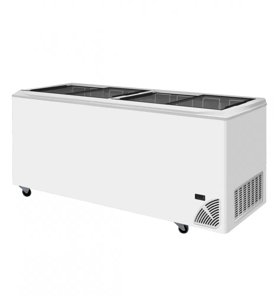 Prosklené mrazničky Byfal jsou k dostání ve třech bravách: červená, šedá, bíla a ve dvou provedeních: s rovným víkem a oblým víkem. Vyznačují se vynikajícími izolačními vlastnostmi. Vnější plášť je vyroben z pozinkovaného plechu, ten je z vnější strany potažen PVC, což jej činí odolnější proti korozi a poškrábání. Vnitřní stěny mrazničky jsou z Alu plechu o čistotě 99 % mimo dna, to je vyrobeno z ocelového plechu s povrchovou úpravou pro styk s potravinami. Vrchní krytí je z tvrzeného skla s termickou vrstvou,která zajistí lepší izolaci.Víko je opatřeno zámkem. Kompresor řídí digitální termostat s displejem, který znázorňuje aktuální teplotu. Ve standardní výbavě se nachází plný počet košů, do kterých je možno objednat dělící přepážky pro rozdělení mražených potravin. statické chlazení|vestavěný agregát|manuální odmrazování|digitální termostat s teploměrem|síla izolace stěny - 65 mm|bílé opláštění, uvnitř ALU|koše jsou součástí|zámek|kolečka Pultová mraznička s posuvným rovným víkem a digitálním termostatem s teploměrem