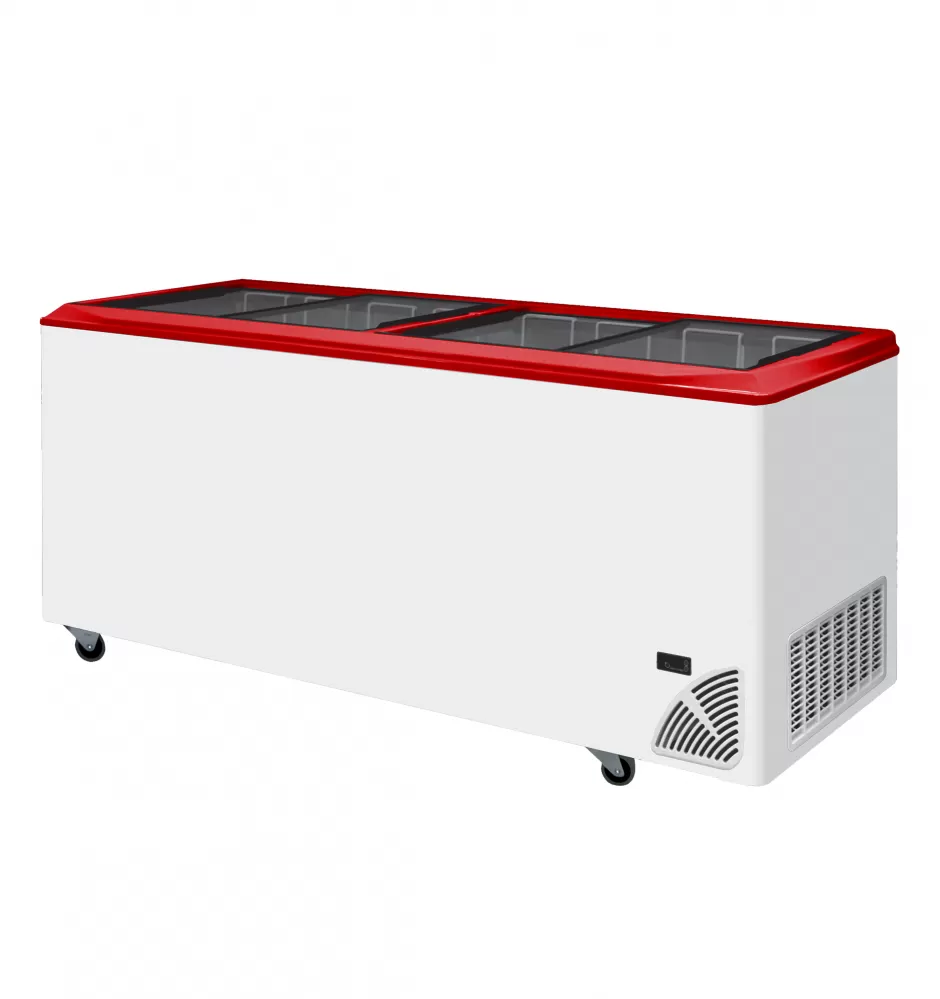 Prosklené mrazničky Byfal jsou k dostání ve třech bravách: červená, šedá, bíla a ve dvou provedeních: s rovným víkem a oblým víkem. Vyznačují se vynikajícími izolačními vlastnostmi. Vnější plášť je vyroben z pozinkovaného plechu, ten je z vnější strany potažen PVC, což jej činí odolnější proti korozi a poškrábání. Vnitřní stěny mrazničky jsou z Alu plechu o čistotě 99 % mimo dna, to je vyrobeno z ocelového plechu s povrchovou úpravou pro styk s potravinami. Vrchní krytí je z tvrzeného skla s termickou vrstvou,která zajistí lepší izolaci.Víko je opatřeno zámkem. Kompresor řídí digitální termostat s displejem, který znázorňuje aktuální teplotu. Ve standardní výbavě se nachází plný počet košů, do kterých je možno objednat dělící přepážky pro rozdělení mražených potravin. statické chlazení|vestavěný agregát|manuální odmrazování|digitální termostat s teploměrem|síla izolace stěny - 65 mm|bílé opláštění, uvnitř ALU|koše jsou součástí|zámek|kolečka Pultová mraznička s posuvným rovným víkem a digitálním termostatem s teploměrem