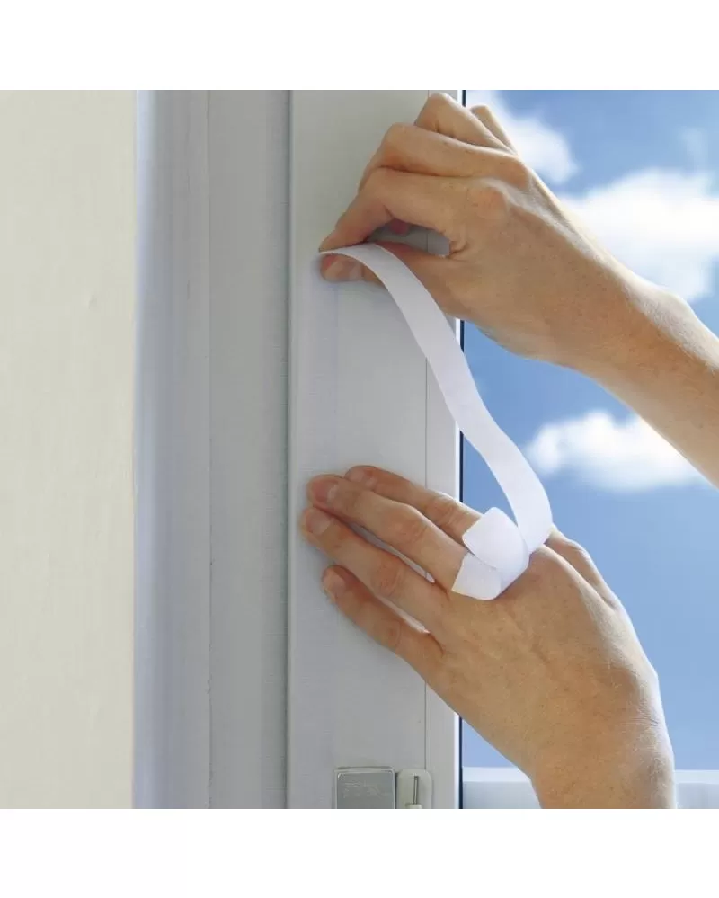 • Montáž těsnění je velmi jednoduchá. Suchým zipem se upevní textilní těsnění do okenní štěrbiny, kdy délka 4 m umožňuje použití i ve větších oknech