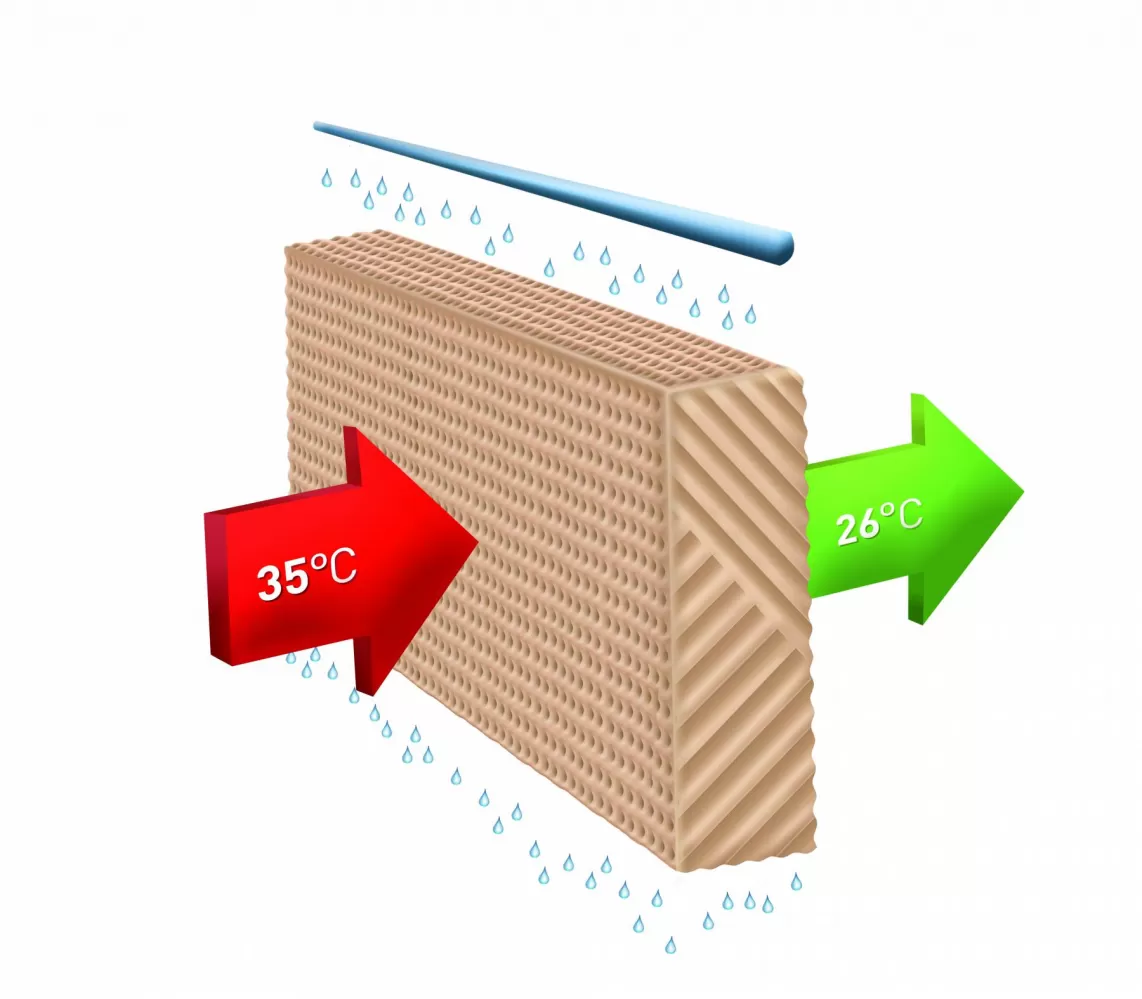 • Ochladzuje vzduch pomocou jednoduchého a prirodzeného procesu odparovania vody a je šetrný k životnému prostrediu a veľmi energeticky úsporný