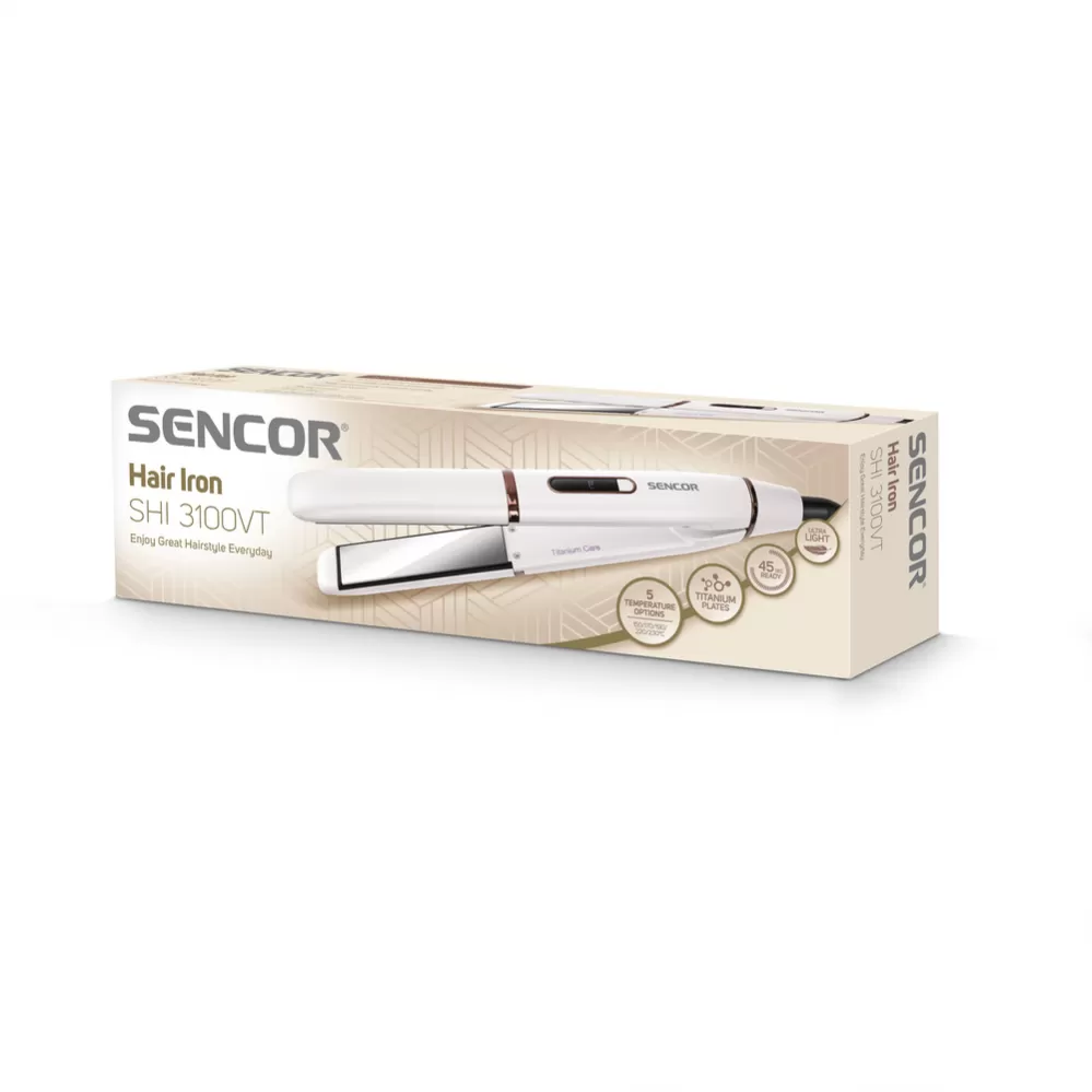 Žehlička na vlasy SENCOR SHI 3100VT 5 teplotních nastavení 150/170/190/210/230 °C Titanový povrch žehlících ploch pro maximální komfort a… Celý popis