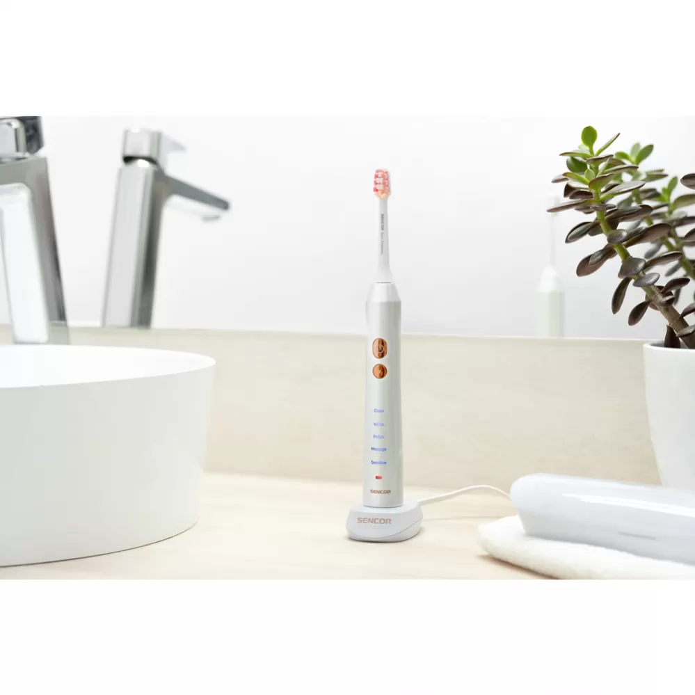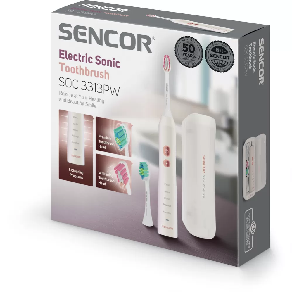 Zubní kartáček SENCOR SOC 3313PW 5 Přednastavených čistících a regeneraci podporujících programů Rychlost stěrů je až 48 000 za minutu … Celý popis