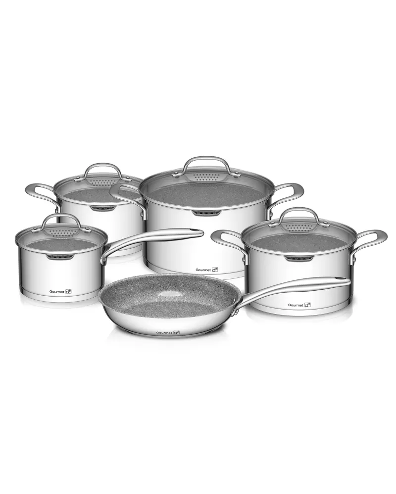 Sada nádobí G21 Gourmet Miracle s cedníkem, 9 dílů, nerez/greblon