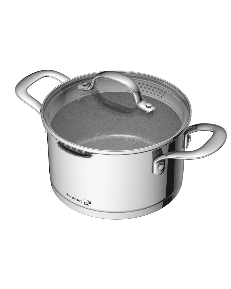 • Celonerezová sada s nepřilnavým povrchem GREBLON® C3+ zaujme na první pohled unikátní vnitřní vrstvou nerezového nádobí G21 Gourmet Miracle.