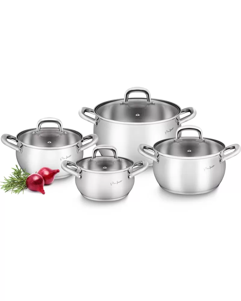 • Designové nerezové nádobí vyrobeno z prvotřídní nerezavějící oceli, opatřeno silným sendvičovým dnem a velmi elegantními úchyty pro větší bezpečnost, funkčnost a pohodlí