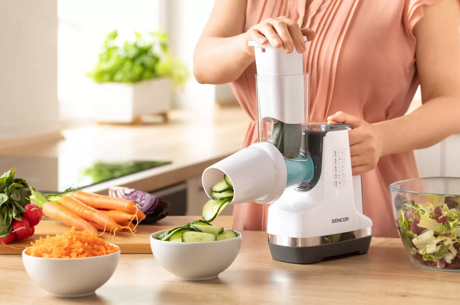 • Vhodné pro přípravu ovocných a zeleninových salátů nebo sýrových a zeleninových pomazánek atd.