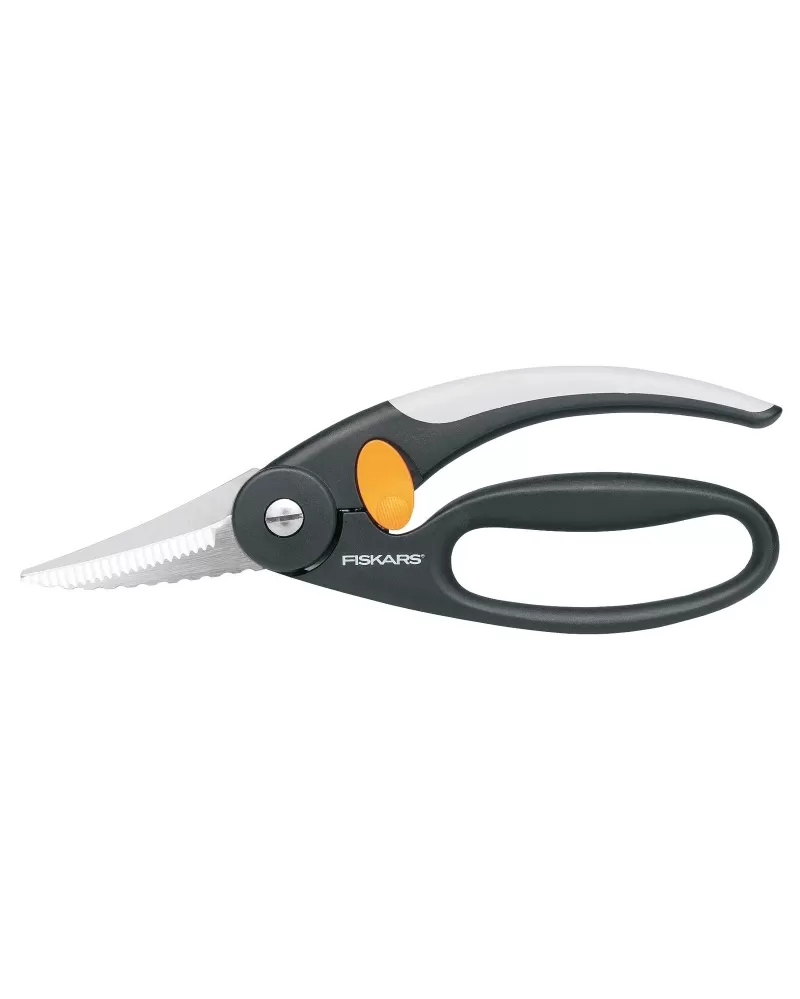 Nůžky na ryby Fiskars 1003032 Silné zoubkované nůžky na porcování ryb Snadno se s nimi škrábou šupiny, kuchá a porcuje ryba Pohodlná… Celý popis