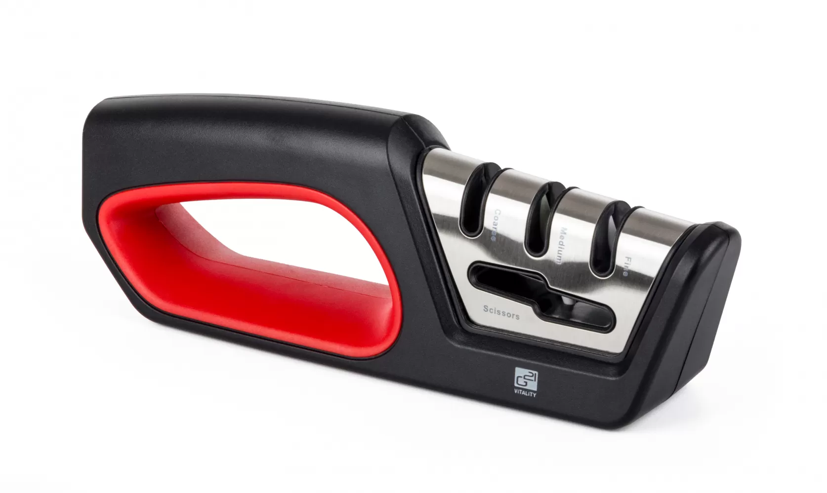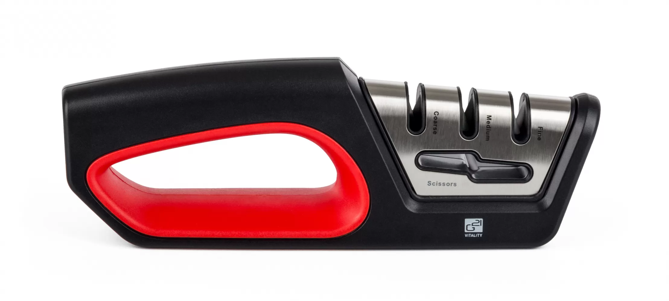 Multifunkční třístupňový ostřič nožů a nůžek je z odolného materiálu, s ergonomicky tvarovaným tělem a protiskluzovým dnem. Jeho použití je proto snadné a bezpečné.