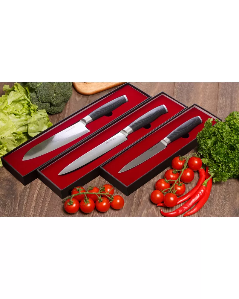• Vysoce kvalitní nůž G21 Gourmet Damascus Santoku o délce 17 cm z japonské damascénské oceli s vámi bude krájet, ořezávat i porcovat.