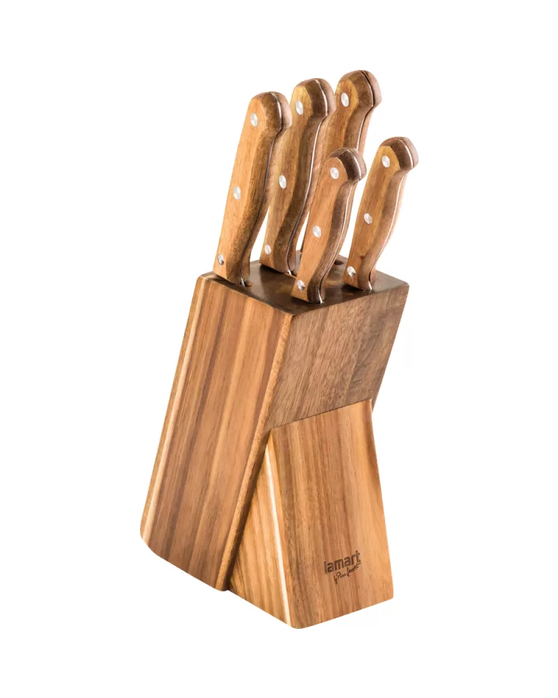 Set 5 nožů v bloku Wood LAMART LT2080 Velmi ostrá čepel a ergonomická rukojeť pro maximální účinek a bezpečné užití Neovlivňuje vůni a chuť… Celý popis
