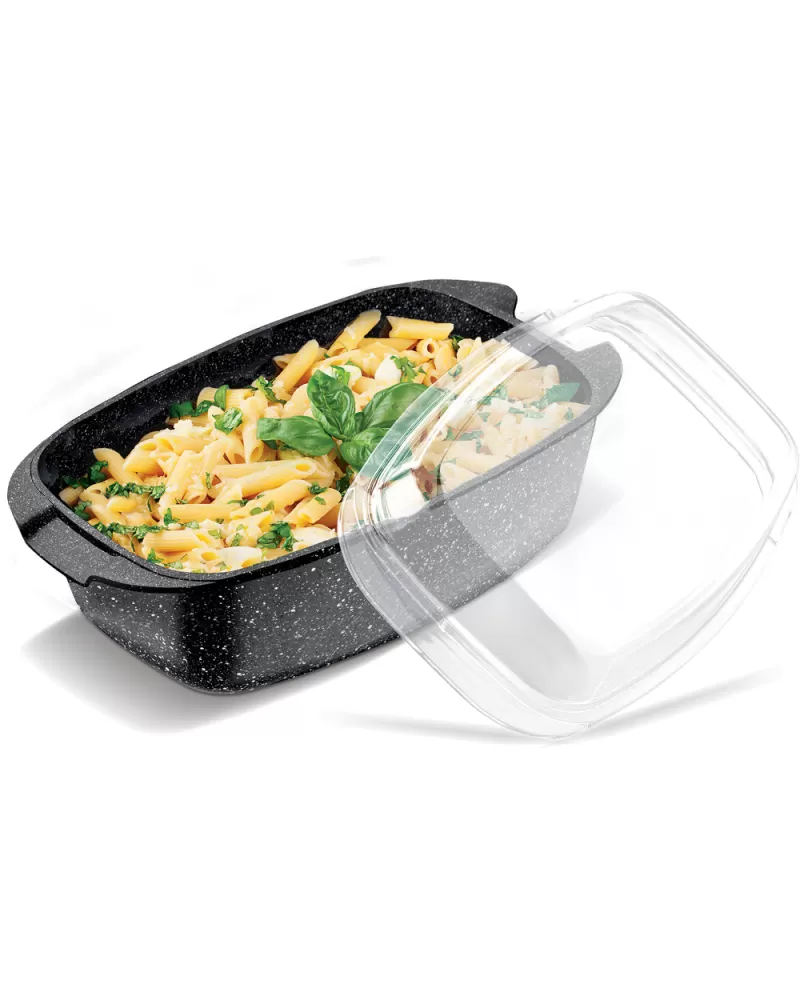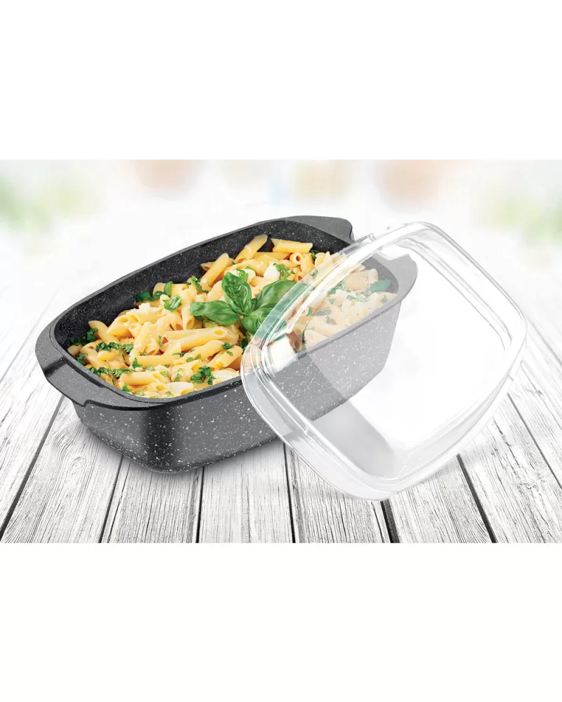 Pekáč s varnou poklicí ROCK LAMART LT1156 Vyrobeno z vysoce odolného hliníku Pekáč se skleněnou poklicí opatřen vnitřním marble povrchem… Celý popis