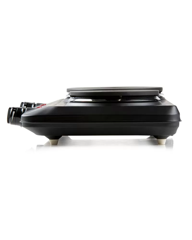 Snadno přenosný vařič v černé lesklé barvě, která odolá i vyšším teplotám a není tolik náchylná na znečištění. Dvě plotýnky (15 a 18 cm) zajistí komfort při vaření jakéhokoli pokrmu.
