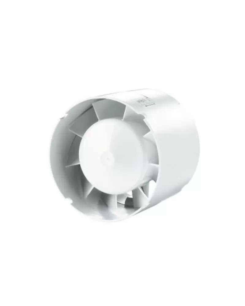 Axiálny potrubný ventilátor DALAP Vents 125 VKO1 vybavený guľôčkovými ložiskami a vhodný na odsávanie alebo nasávanie vzduchu na kratšie vzdialenosti