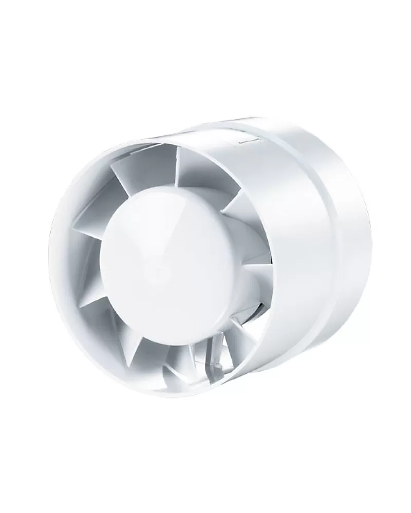 Axiální ventilátor k instalaci na potrubí DALAP Vents 125 VKO K vybavený kuličkovými ložisky a vhodný pro odsávání nebo nasávání vzduchu na kratší vzdálenosti