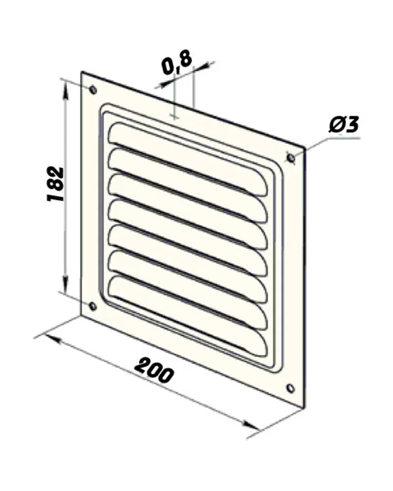 • Větrací mřížka 200x200 mm v hliníkovém provedení bez příruby a se síťkou je vhodná pro větrání, ale i nasávání