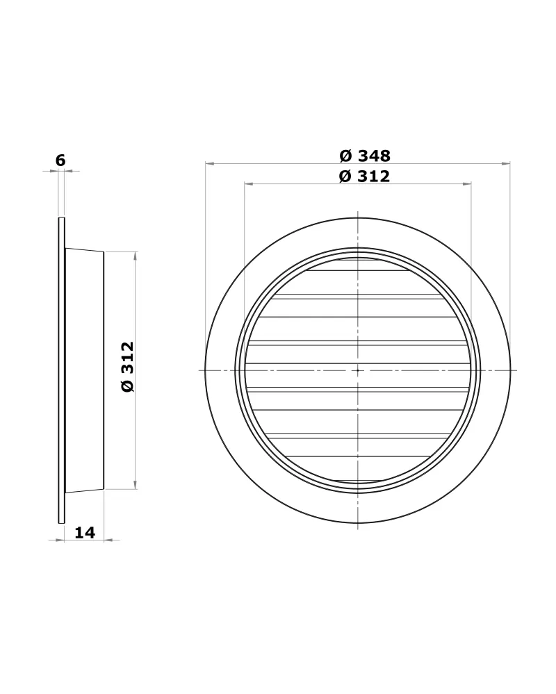 • Větrací mřížka Dalap AV O 315 mm vyrobena z kovu je opatřena přírubou pro snadné usazení do stěny i napojení do vzduchovodu